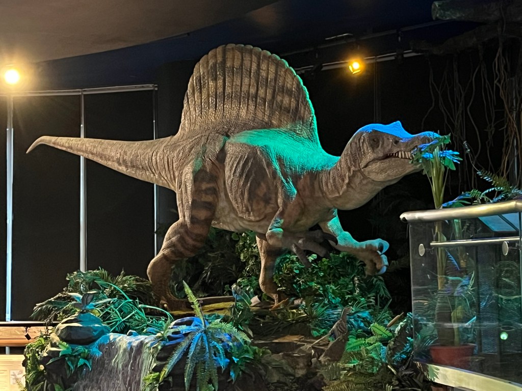 展示されている恐竜。かなり大きかったです。首が動いたり、吠えたりします。