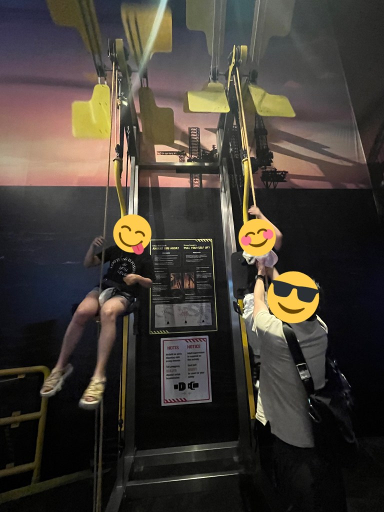 座って目の前のロープを引っ張ると座っている椅子が持ち上げるシステムです。腕力のあるさくらは出来てましたが、すみれは主人に手伝ってもらってました。