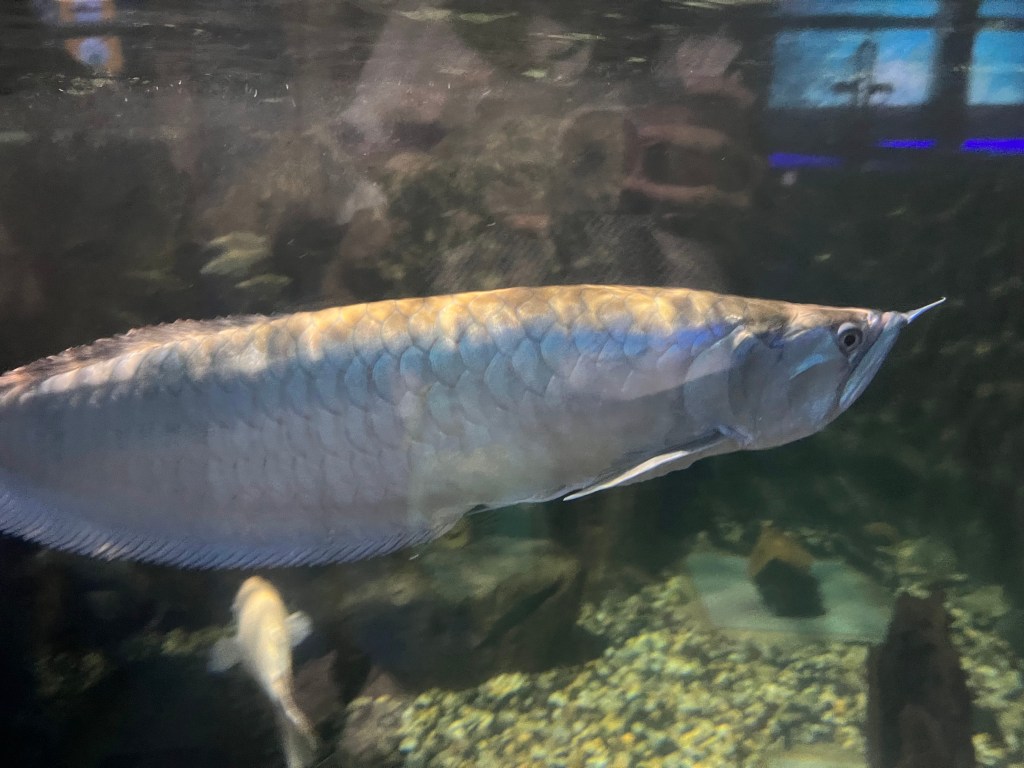熱帯雨林の川にいる魚コーナーでは、とても大きいアロアナや、その他淡水魚がゆっくりと泳いでいました。ちょっと不気味な感じでした。