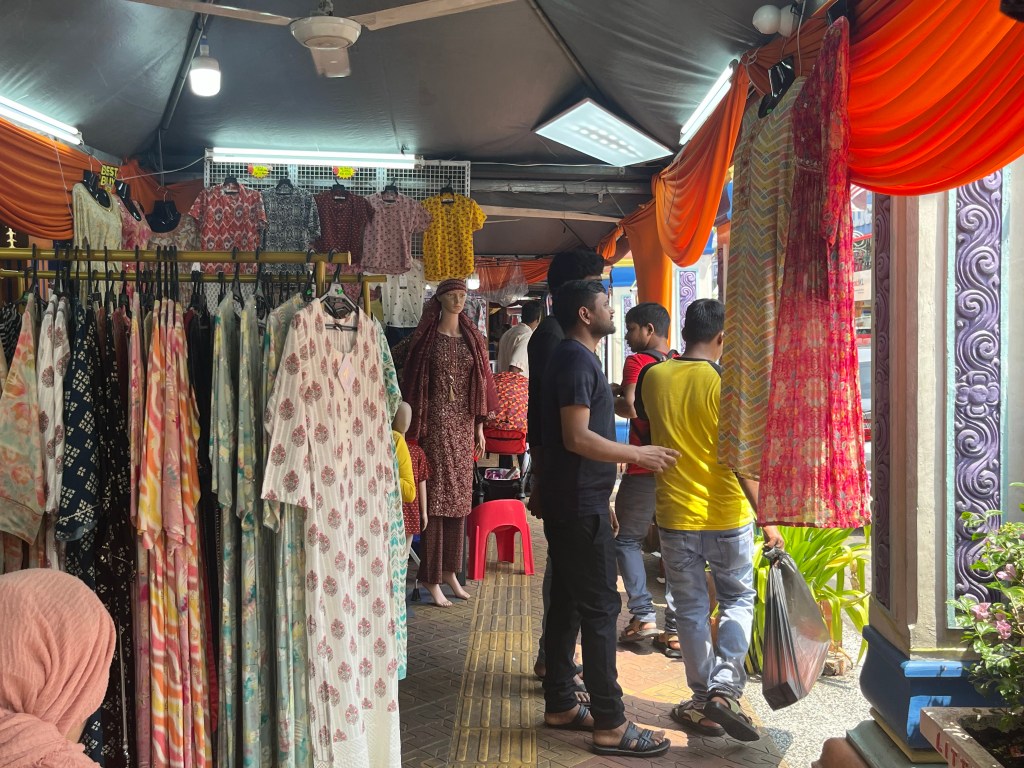 インドの衣装を買いにリトルインディアへ行って来ました。ディーパバリが近いためか大変混雑していて、子供達も暑さと人混みにちょっと酔ってしまう感じでした。まず、お店の音楽が大きすぎる!スピーカーが行きかう人々の顔辺りに設置されており、大音量が耳を直撃です!これは大きな音が大嫌いなすみれに大ダメージを与えました。次に慣れない匂いに子供達が過敏に反応。無視出来ない特殊な匂いでセカンドダメージ。そして人混みと暑さ…。もうこれだけで十分すぎるくらい子供達はダメージを食らっていて、とても服を見る余裕はありませんでした。途中で入った服屋さんも、生地は綺麗なのですが、どうやって着たらいいのか分からない服ばかりです。簡単に着れそうな物もあったのですが、子供達曰く「派手すぎる…」結果、服は何も買わずに終わりました!残念!ですが、ブレスレットなら…と言って黄色い綺麗なブレスレットだけ買いました。子供達によると、「衣装を着て来る子は小さい子が多くて、セカンダリー(中高生)はあまり着ないらしいよ」との事だったので、その言葉を信じ、買わない選択をしてしまいました。大丈夫なのか?ちょっと心配ですが、人より目立つ事を極端に恐れている子供達は、絢爛豪華な雰囲気のインド衣装はまだ早かったようです。来年は来てくれるかな?まぁ、だめでしょうね。でも、すれ違う小さな子達の衣装は本当に可愛くて写真に撮りたいくらいでした。不発に終わったリトルインディア…写真だけでもUPしますね。