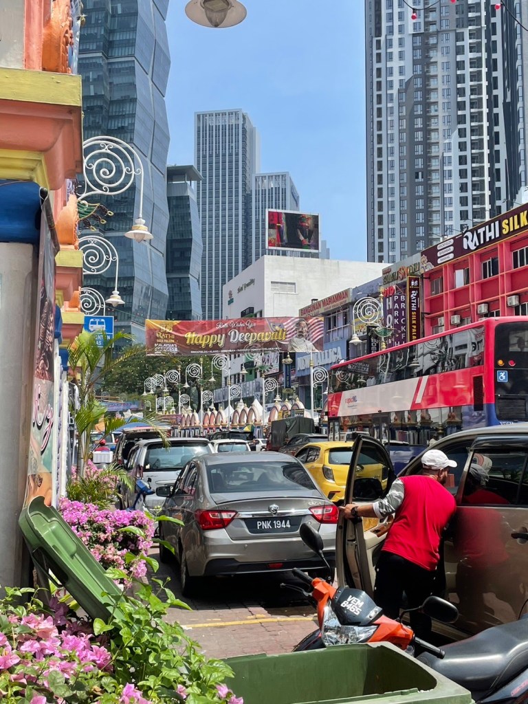 大渋滞です。クラクションの音がずっと鳴りやみません。大音量のインド音楽にクラクション…。耳どころか、頭がおかしくなりそうでした。