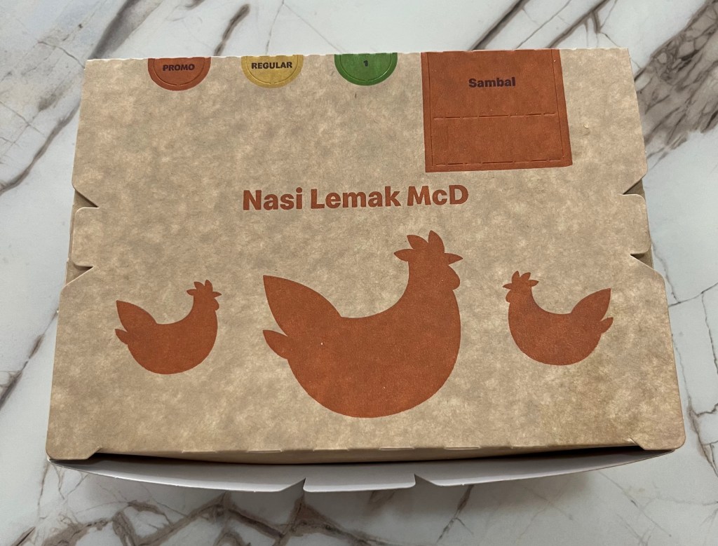 冬休み中の子供達、毎食昼ご飯を作るのがちょっとしんどくなってきたので(まだ冬休み3日目!)ちょっとマックでも行く?と聞いたところ、大喜びの我が子達。以前、本格窯焼きピザをテイクアウトしてきた時も「これも美味しいけど、私達、やっぱりピザハットとかドミノの方が好き…」と、ジャンク好き宣言をした我が子達、少しモヤっとしつつも、まあ、たまにだしいいかな~とマックに行く事に。こちらのマックは大画面で注文し、その後カウンターまで取りに行く方式です。カウンターで店員さんがせわしなく注文をさばいている日本より早くて簡単な感じです。早速私達も大画面の前で注文しようと列に並んでいると、前のお姉さんの画面がちらっと見えてしまい、その画面にご飯とチキンと目玉焼きのような物が…あれ?マックなのにバーガーじゃない!敏感に反応したさくらは早速自分の番が来るなり「Nasi Lemak」という表記の箇所をクリック。すると、色々なナシレマが!さすがマレーシア!さくらは「ナシレマ」のオリジナルに、すみれはおまけに釣られてハッピーセットに、さくらもおまけが欲しかったようで、私が変わりにハッピーセットを注文する事になりました。
