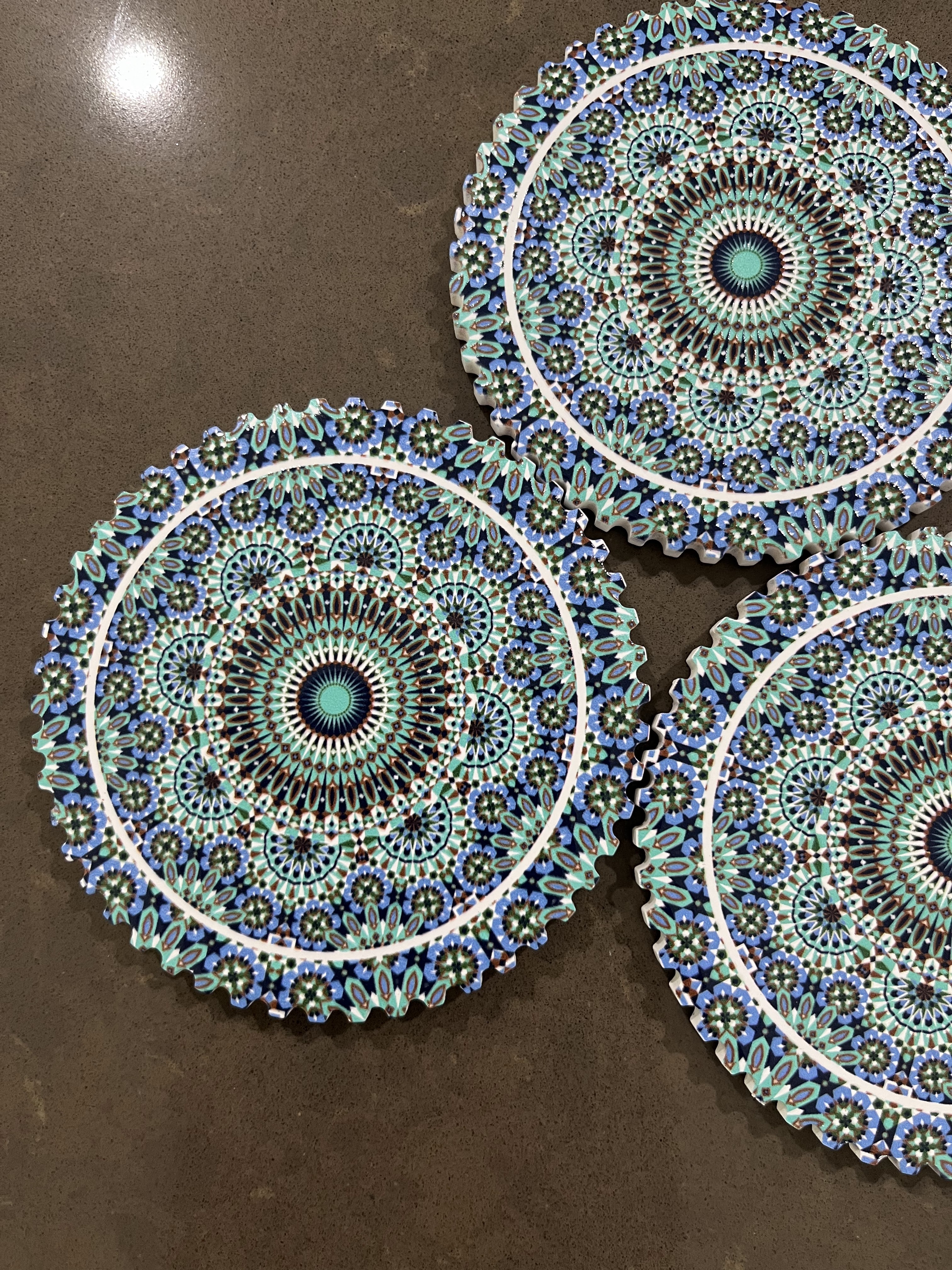 ランカウイ島で買ったタイルのコースター。ちょっと重くて、スーツケースが重量オーバーになり、追加料金が発生しました。でも、綺麗だし良いものに出会えて良かった!と思っていたら、自宅近くのスーパー付近で似たような物が…。KLに戻る予定がある方はランカウイ島で無理して買う事ないみたいです。