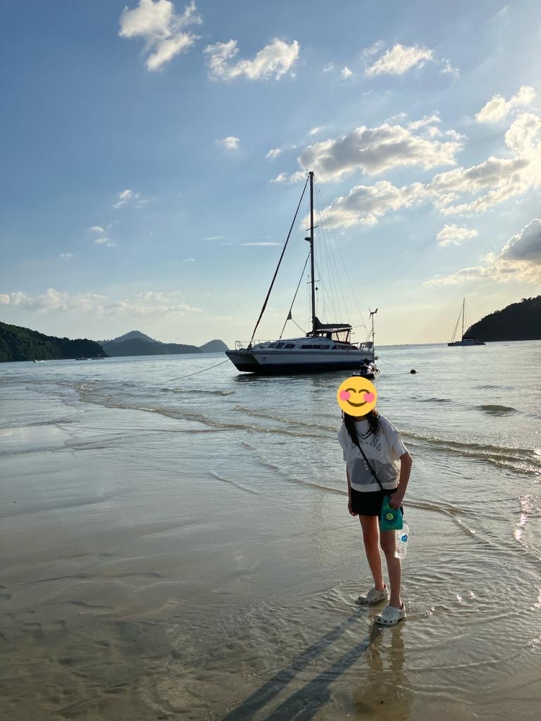 私とさくらは夕食までホテルで休んでいたのですが、主人とすみれは近くのビーチの偵察に行ってくる、と言って出かけて行きました。なんて元気なんだ…。しばらくすると、素敵な写真を送ってきてくれました。