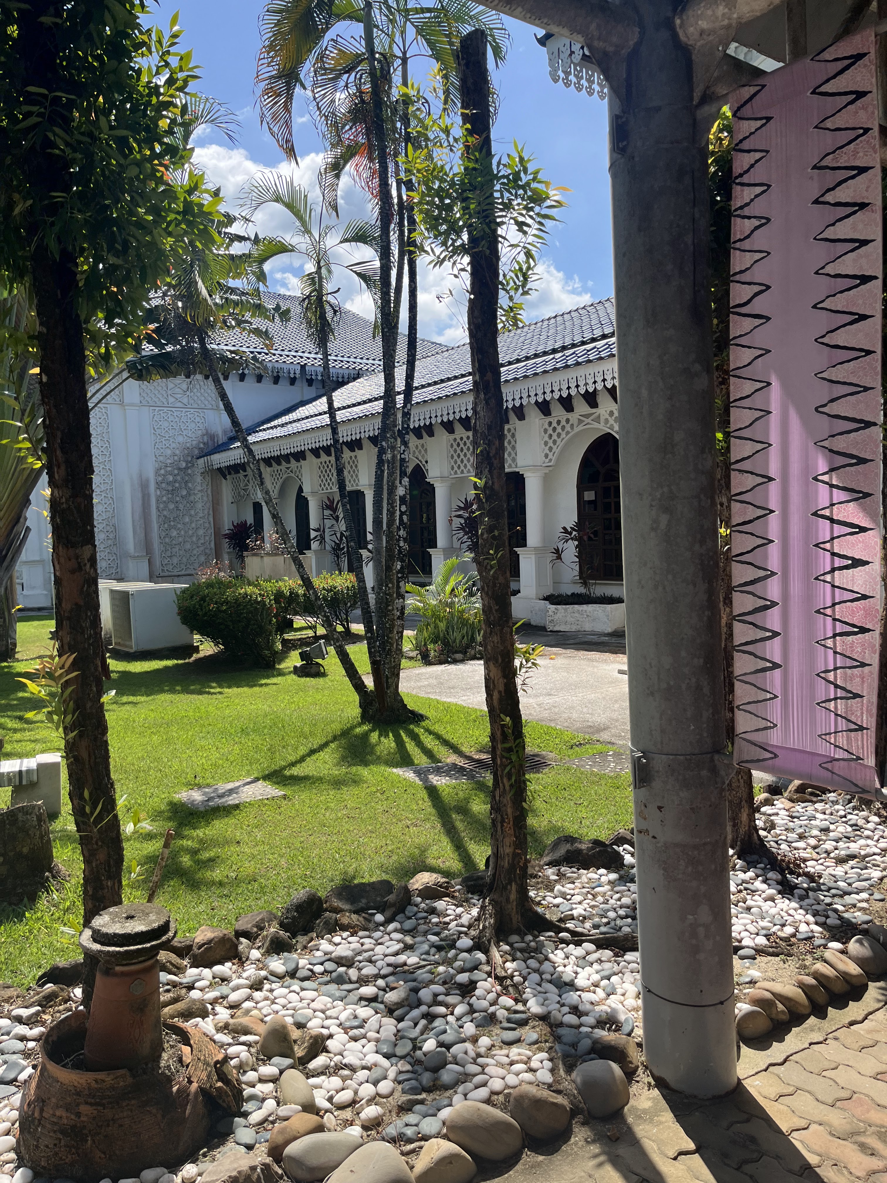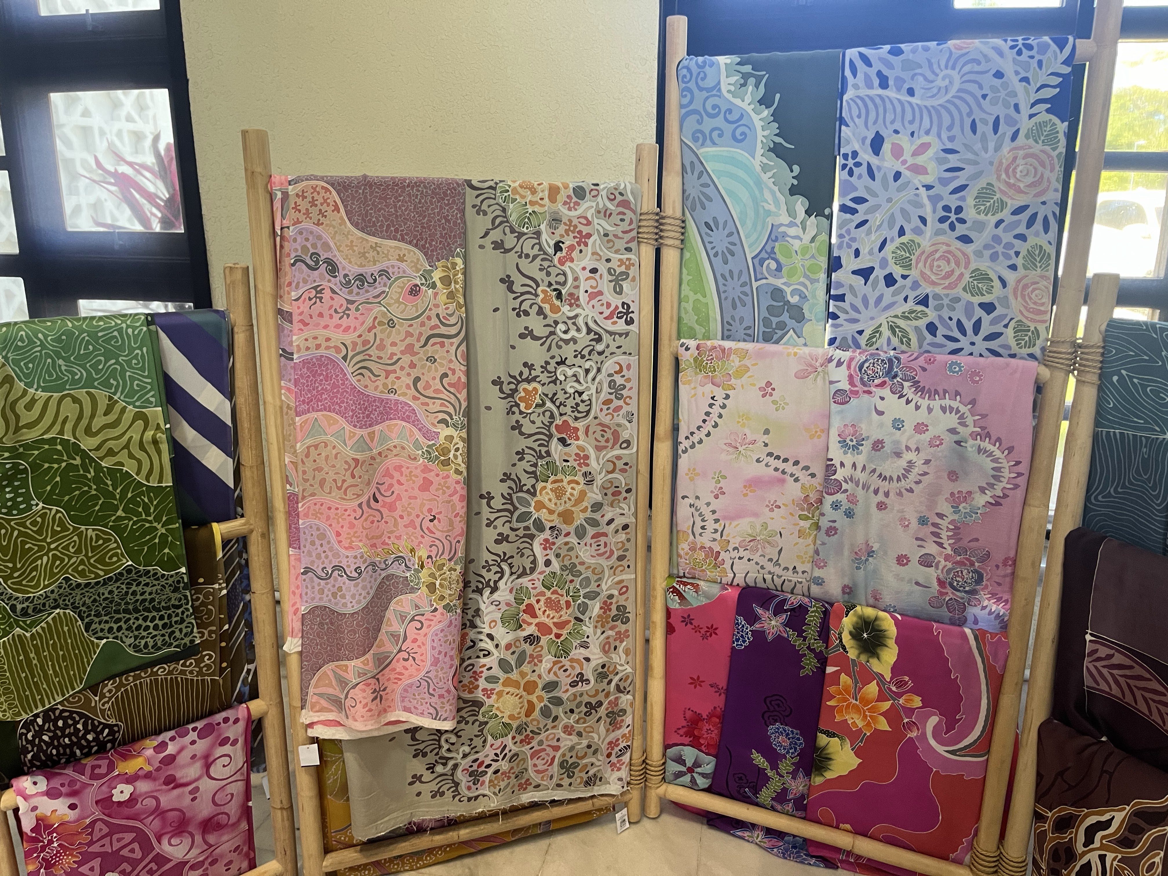 とても立派な建物で、かなり広かったです。ラタンの製品、特産のスズを使ったピューターという製品や、楼染めのバティックという染物など、色々ありました。とても美しく目の保養になりました。みんなでバティック体験をしたいと思っていたのですが、訪問した時間は実施されていないようで、家でできるバティックキットを買って帰ってきました。