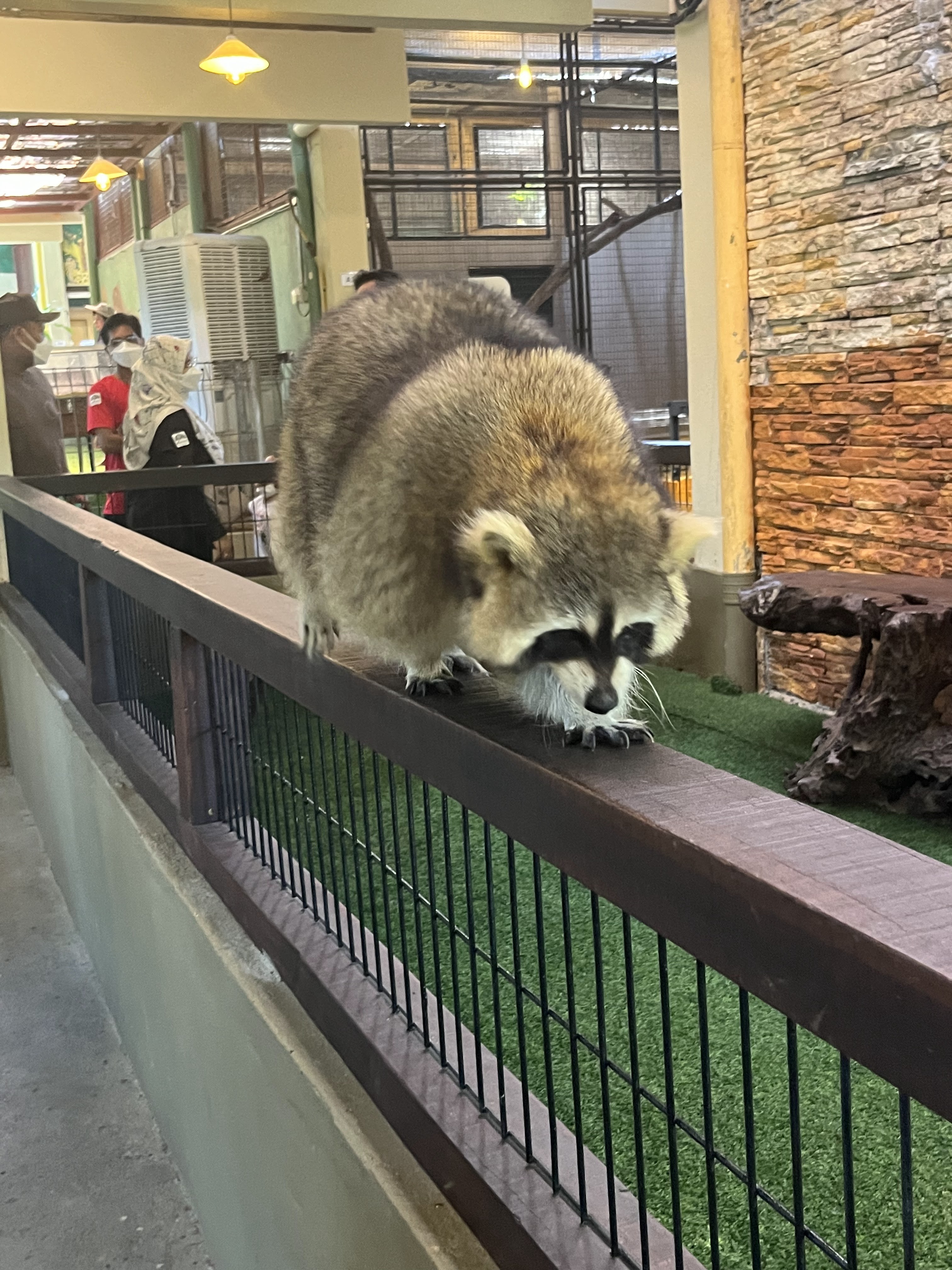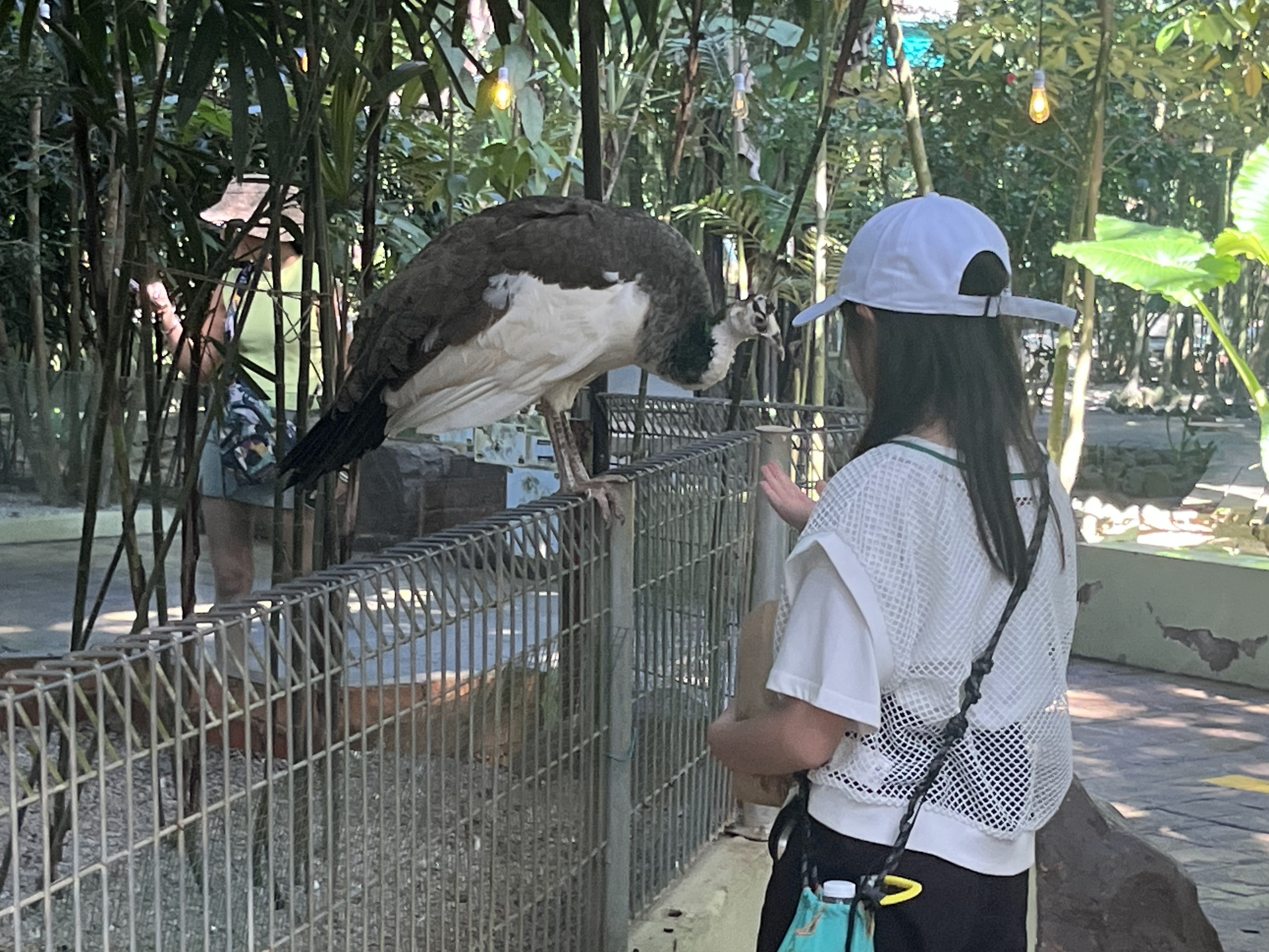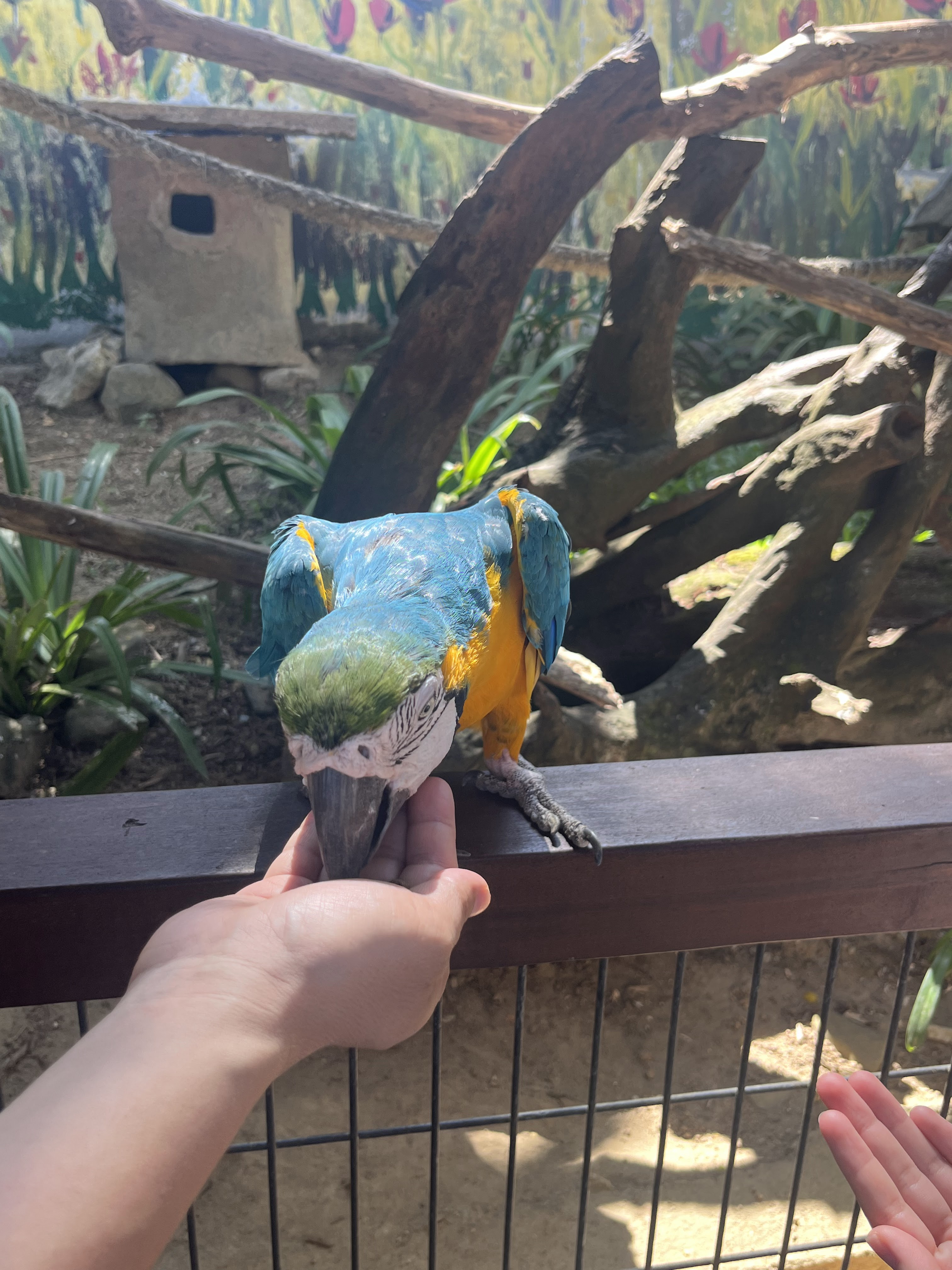 エントランスに放し飼いのオウムがいて、そのオウムと一緒に記念写真を撮ってもらいました。よくあるやつです。普段はそういう物は買わないのですが、今回は何となく買ってしまいました。オウムの他、放し飼いのモモンガ(すぐ人にピタッとくっつくので可愛かった)、アライグマ(みんなが餌をあげるからなのか、かなり大きい)脱走するアヒル、フラミンゴがいました。午後に行ったので、エサの食いつきがあまり良くなかったです。
