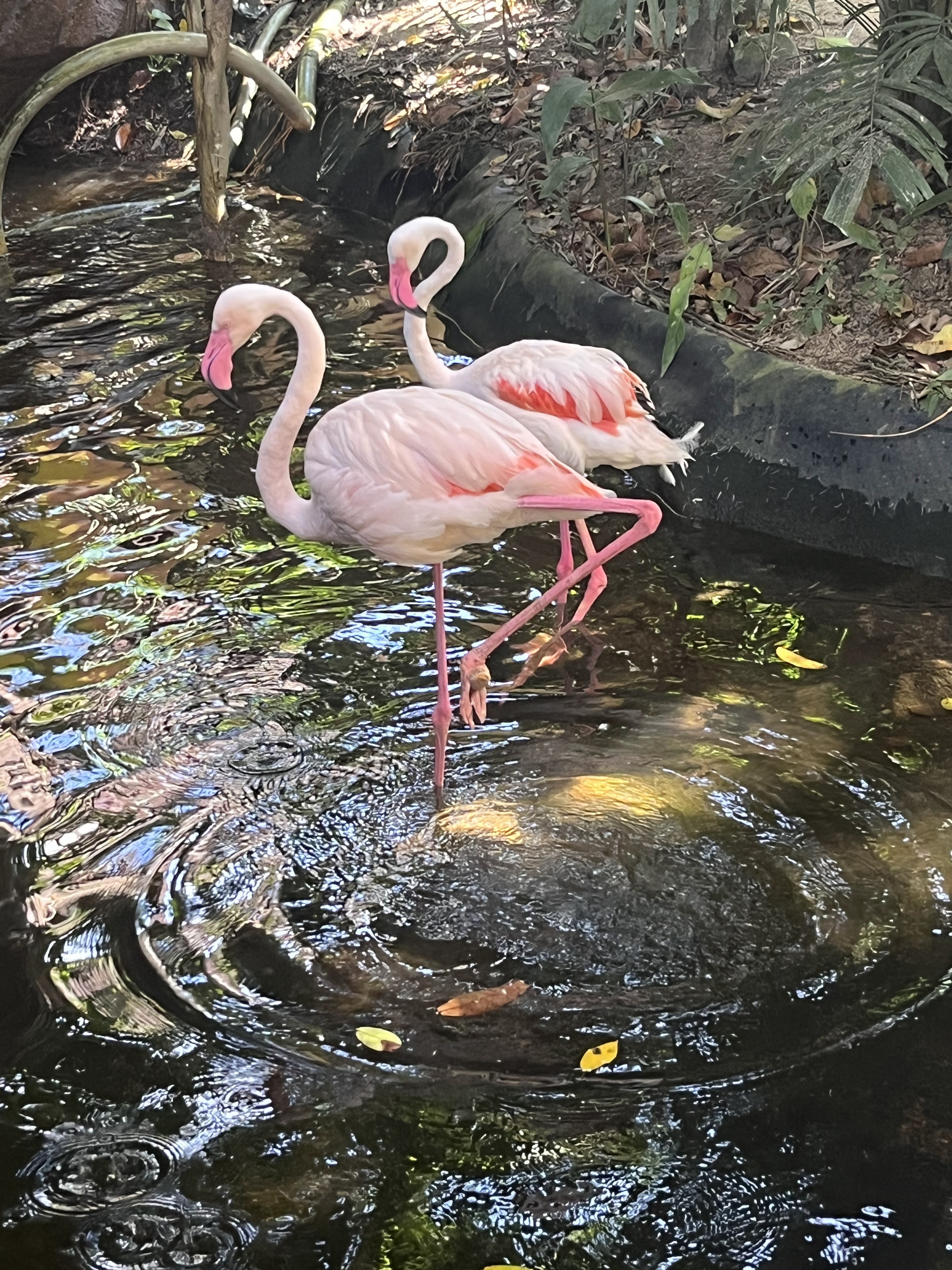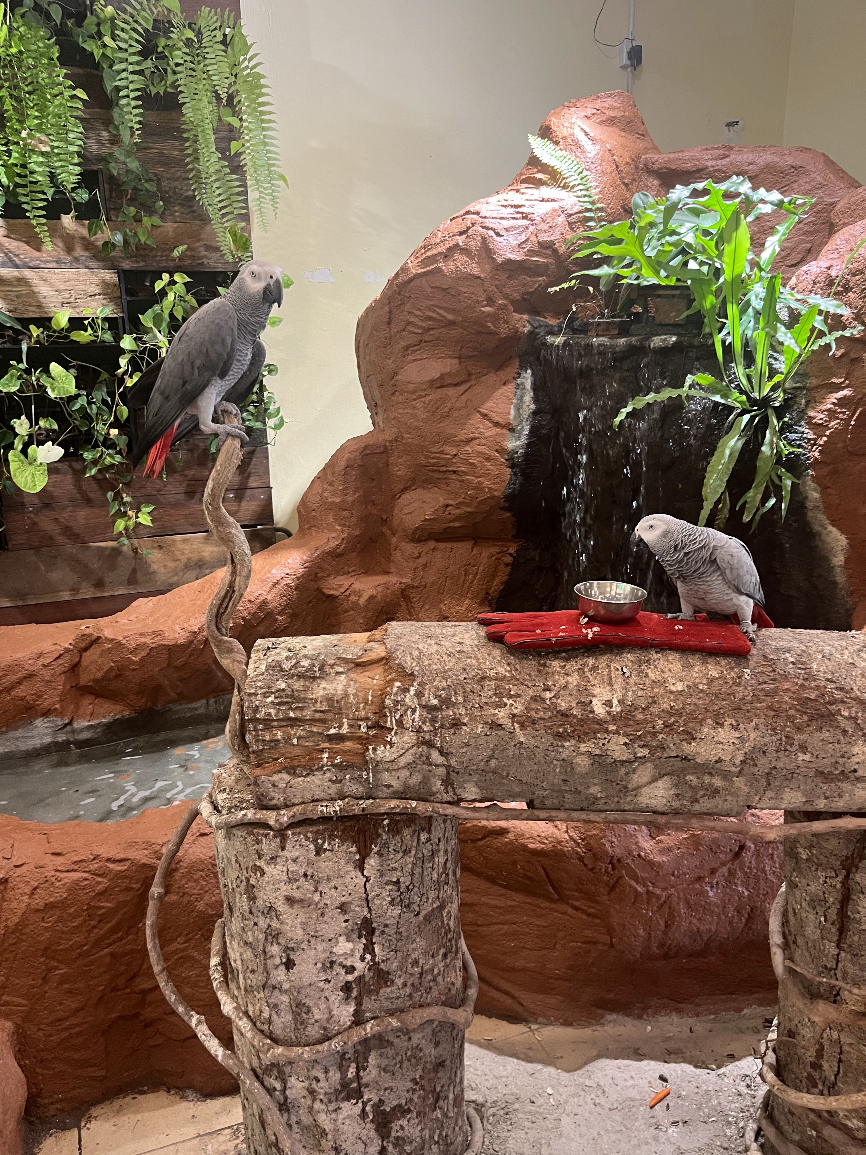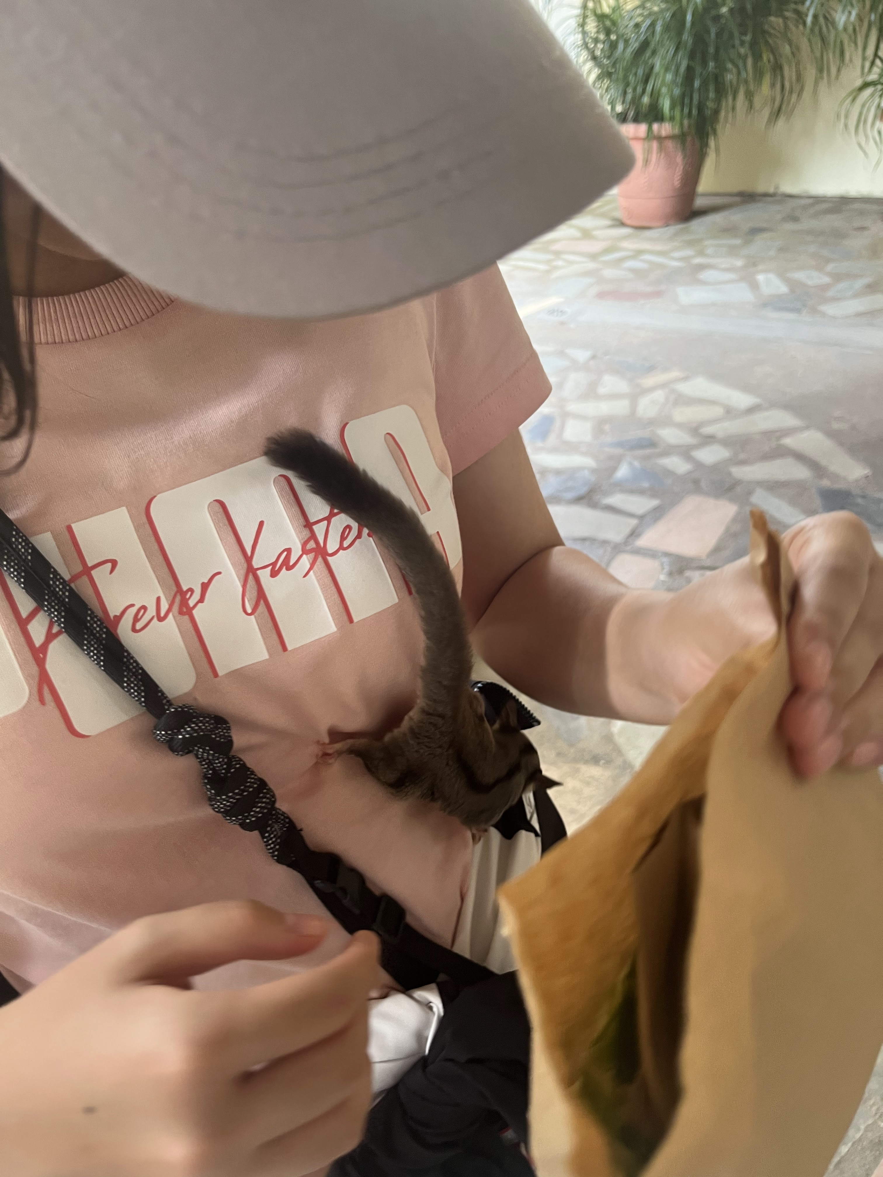 エントランスに放し飼いのオウムがいて、そのオウムと一緒に記念写真を撮ってもらいました。よくあるやつです。普段はそういう物は買わないのですが、今回は何となく買ってしまいました。オウムの他、放し飼いのモモンガ(すぐ人にピタッとくっつくので可愛かった)、アライグマ(みんなが餌をあげるからなのか、かなり大きい)脱走するアヒル、フラミンゴがいました。午後に行ったので、エサの食いつきがあまり良くなかったです。