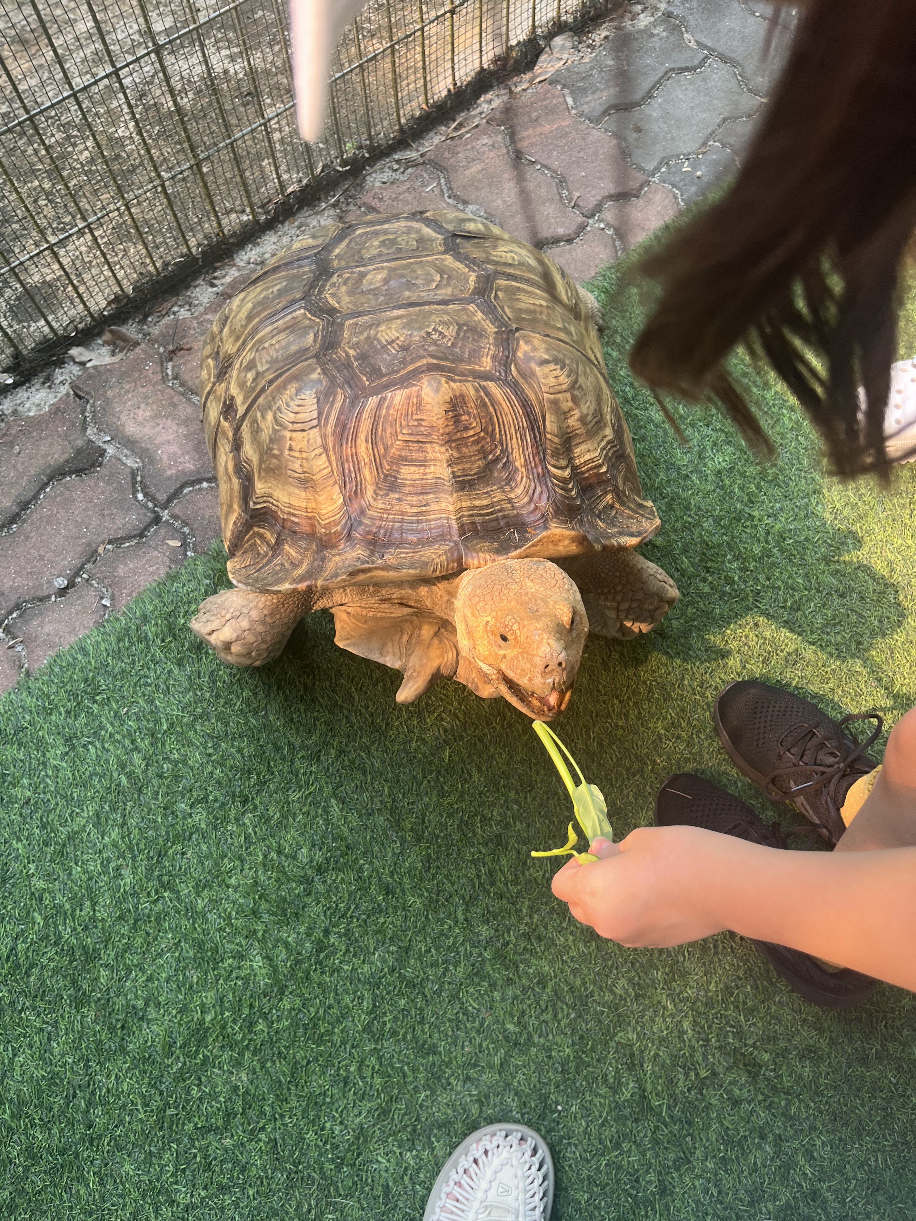 その他にもたくさんの動物にエサやりが出来ました。ワニのはく製がいるのかと思ったら、なんと、本物でした!(さすがにワニに餌付けはしてませんでした)係の人が「触っても大丈夫だよ」と言ってましたが、ちょっと触る気にはなれませんでした。さくらがクジャクにもエサやりをしてましたが、つっつく力か強くてちょっと痛いと言ってました。小さい頃は生き物全般が怖くて苦手だったさくらが、エサやりまで出来るようになって…成長を感じました。でも、写真を撮るのが億劫になるくらい動物がいて、最後の方は私が疲れてしまい、余ったエサをどれでもいいから全部あげちゃったら?等と雑に言ってしまいました。一生懸命あげてた子供達に適当な事を言ってしまい、ちょっと反省していた時にワニの餌付けショーが始まったので、「ワニの餌付けショーだよ!」と言ったところ、子供達は無反応でした。そういえば、「ワニ園あるよ!」と言った時も無反応だったような…ワニ、嫌いなのかな…。そんなこんなでヘトヘトになり、帰りのタクシーで全員爆睡してしまいました。治安の良いランカウイとは言え、不用心ですよね。